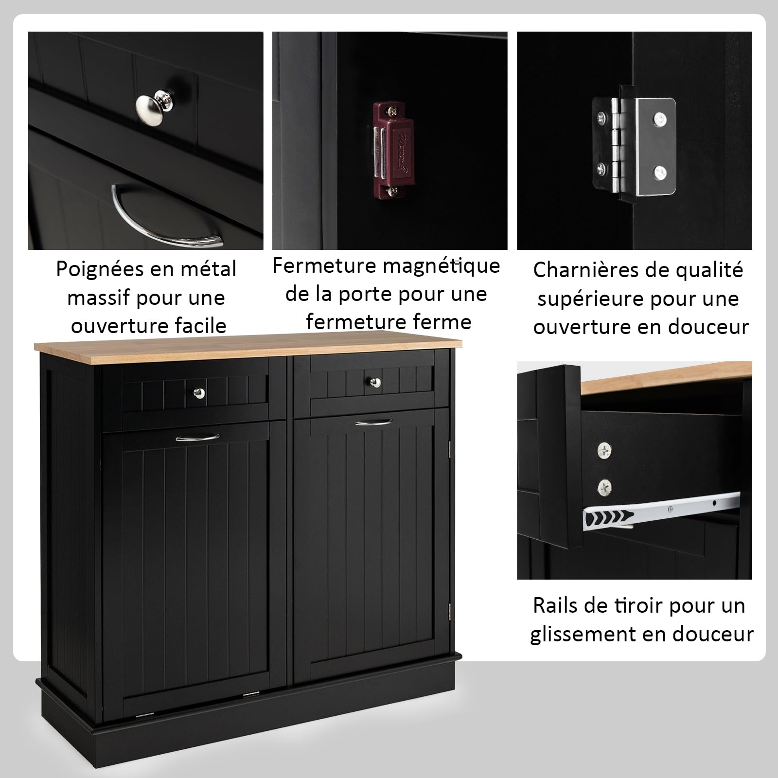 GOPLUS Aparador de cocina ideal para cubo de basura 42L, isla de cocina con 2 cajones, estante ajustable, bandeja de cauchú para comedor, sala de estar, lavandería, cuarto de baño, negro