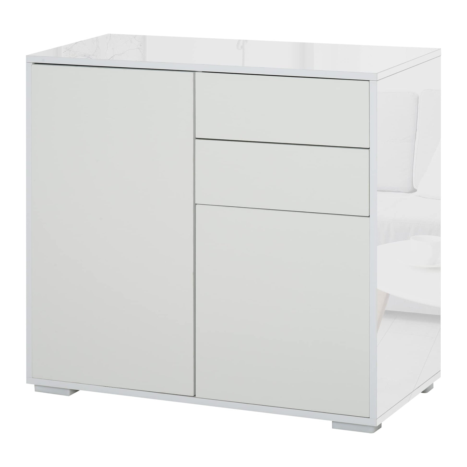 HOMCOM Aparador para Cocina con 2 Puertas 2 Cajones Marco de Blanco Brillante Estante Ajustable Apertura a Presión Armario de Almacenamiento para Dormitorio Salón 79x36x74 cm Blanco