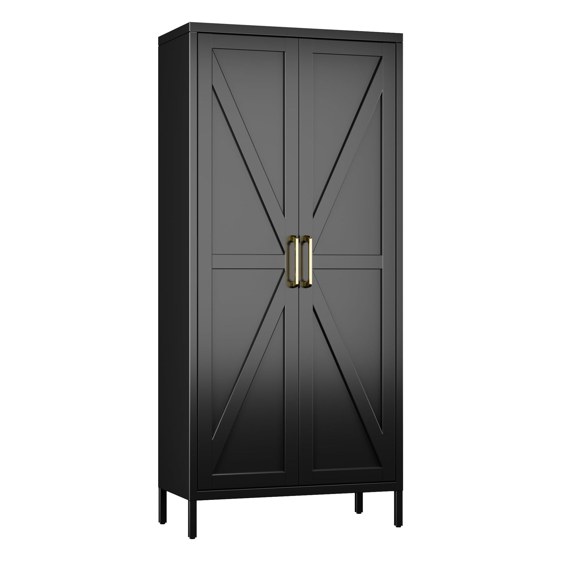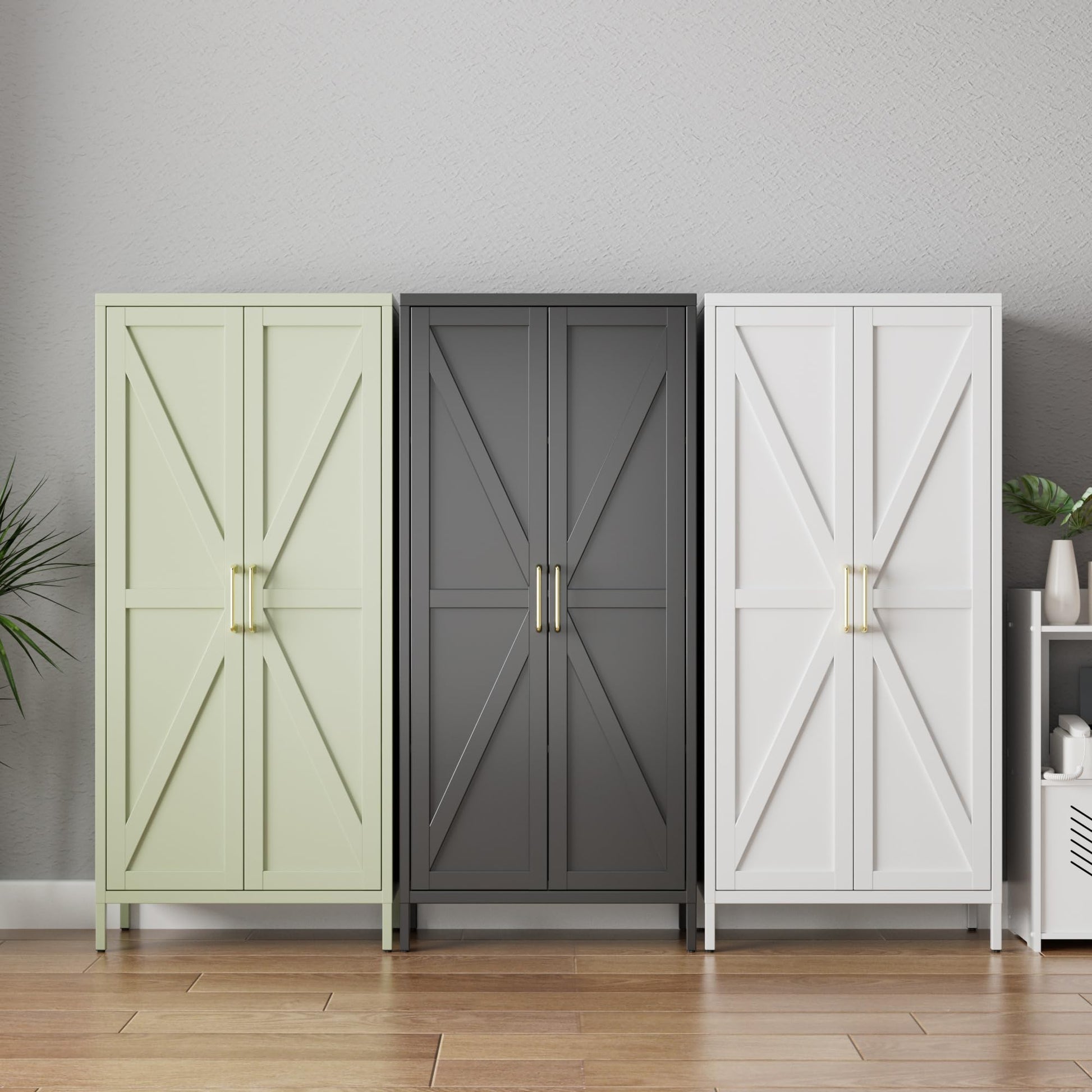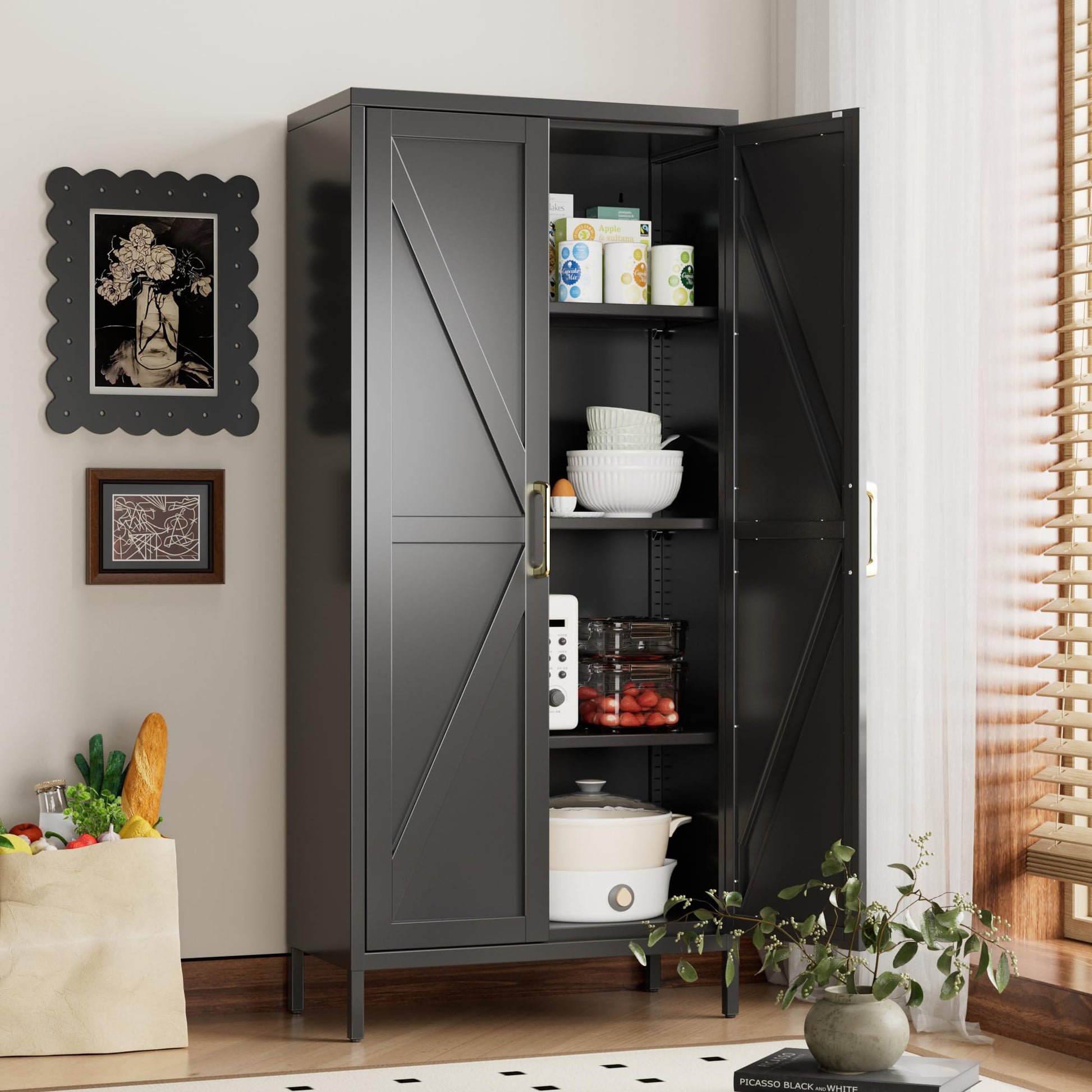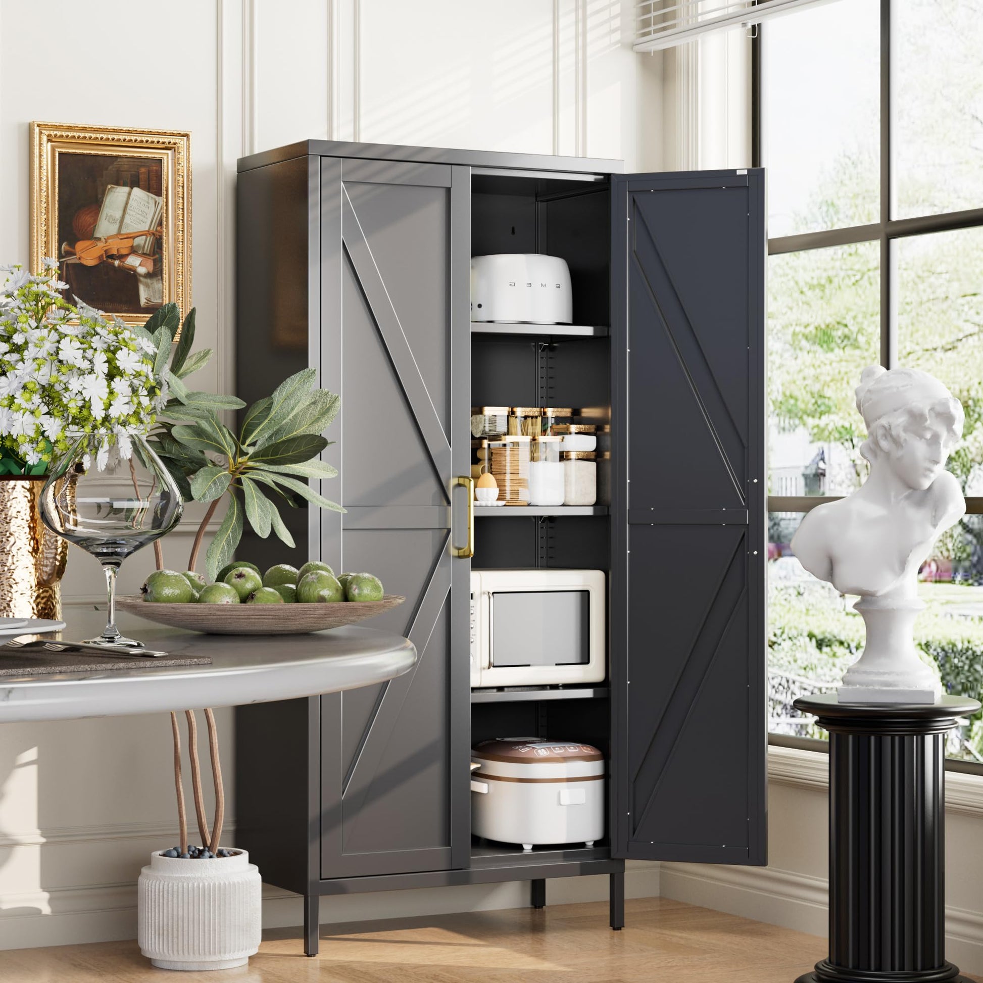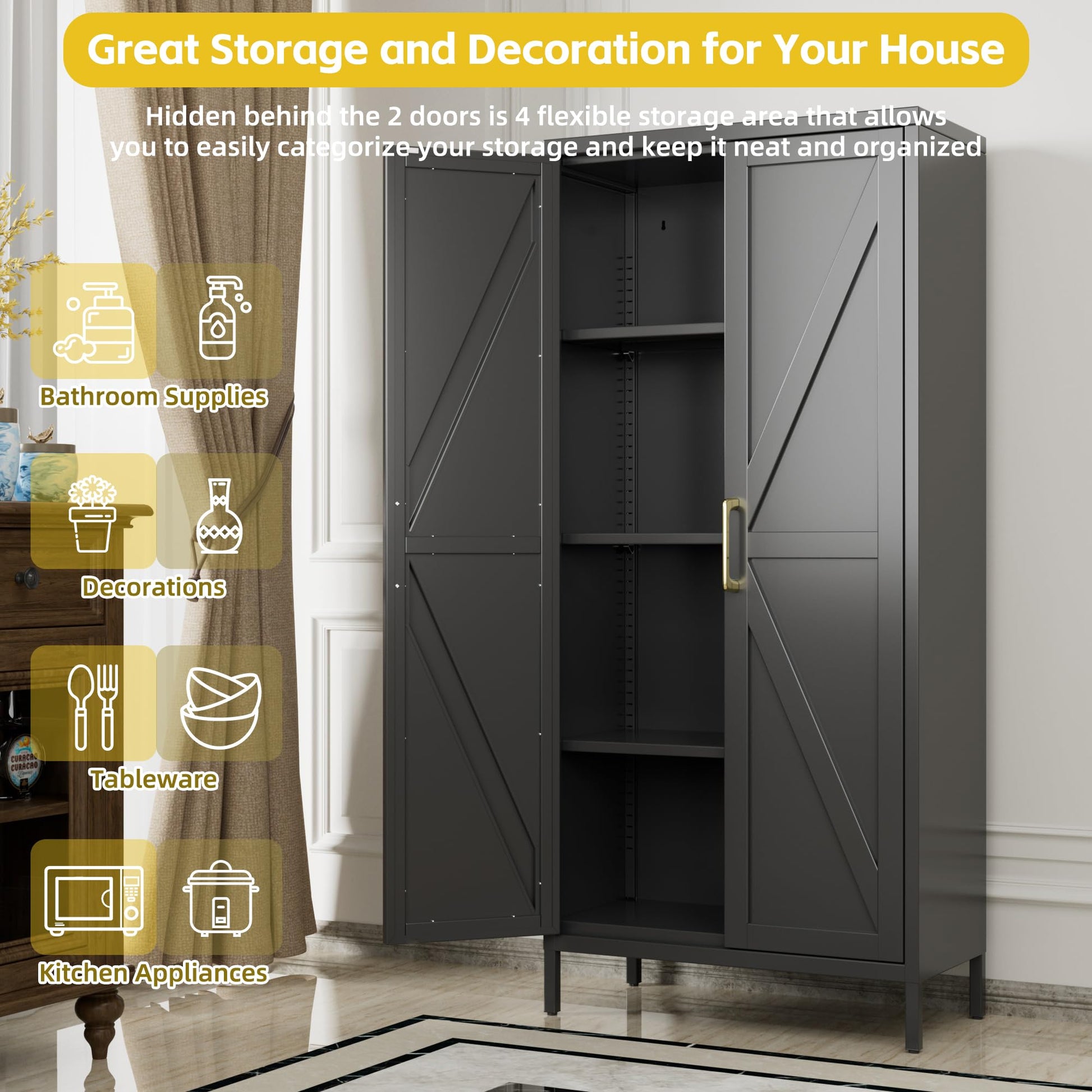 SUPEER Armario Metálico Multiusos con 3 Estantes Regulables, Armario Cocina, Almacenaje, Aparador para Salón, Recibidor 155 x 70 x 35 cm (Negro)