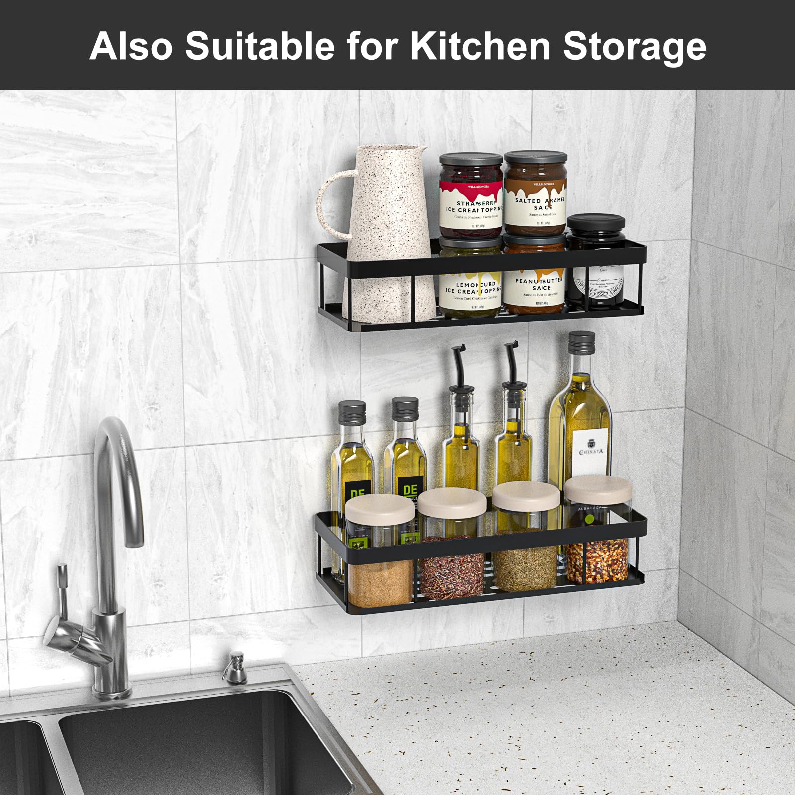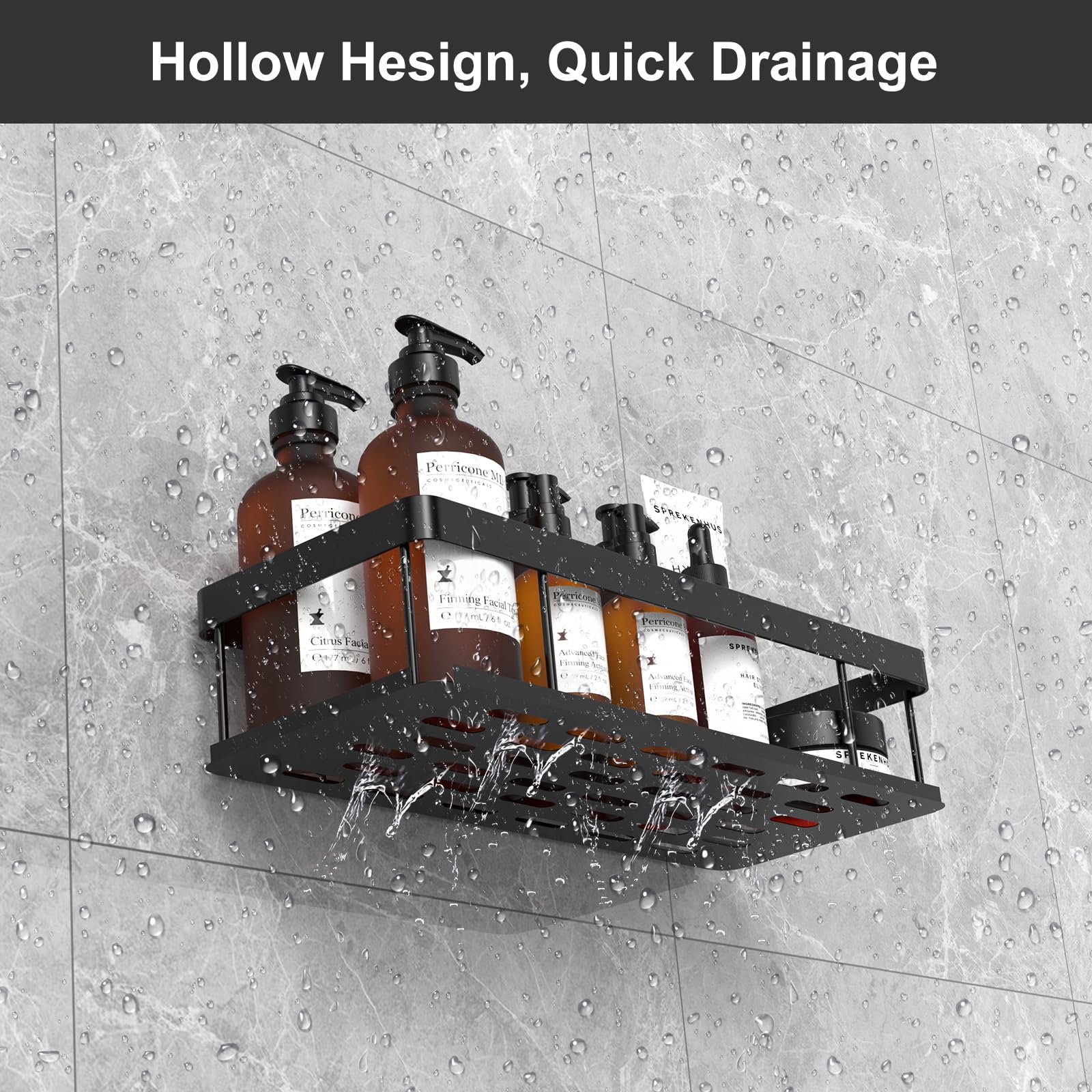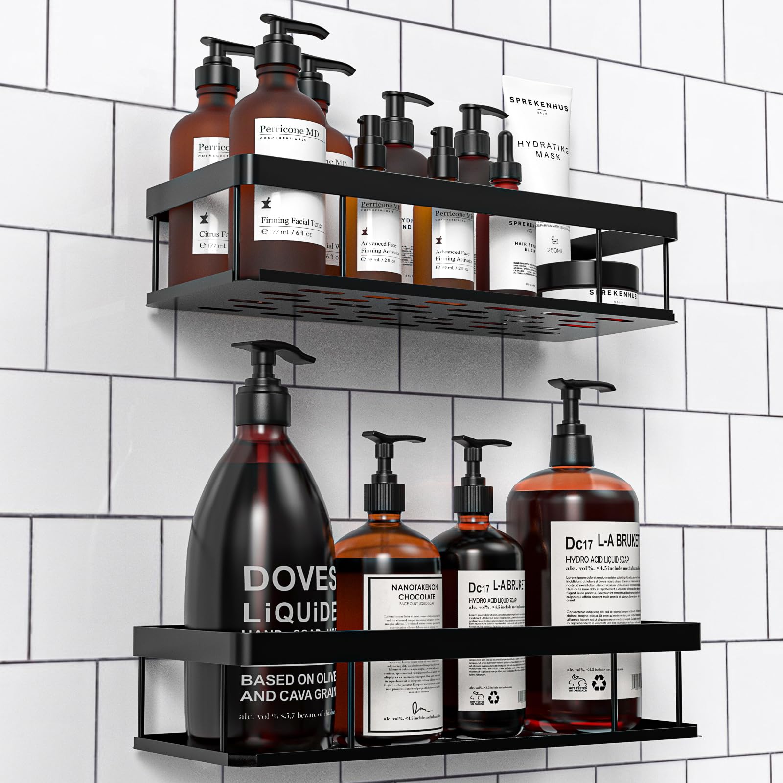 Mantén tu baño, cocina o lavadero organizado con este set de 2 estanterías de UUlioyer. Fabricadas en acero de alta calidad con recubrimiento resistente al óxido y diseño hueco para drenaje, soportan hasta 40 lb y se instalan sin perforaciones, dejando la pared intacta. Perfectas para champú, gel de baño, detergentes o especias.